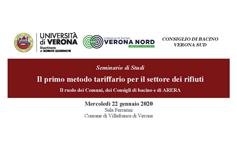 Il Convegno, che indaga il ruolo dei Comuni, dei Consigli di Bacino e di ARERA, si terrà mercoledì 22 gennaio 2020 presso la sala Ferrarini del Comune di Villafranca di Verona.