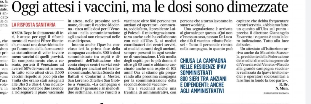 GAZZETTINO PRIMA CAMPAGNA VACCINALE