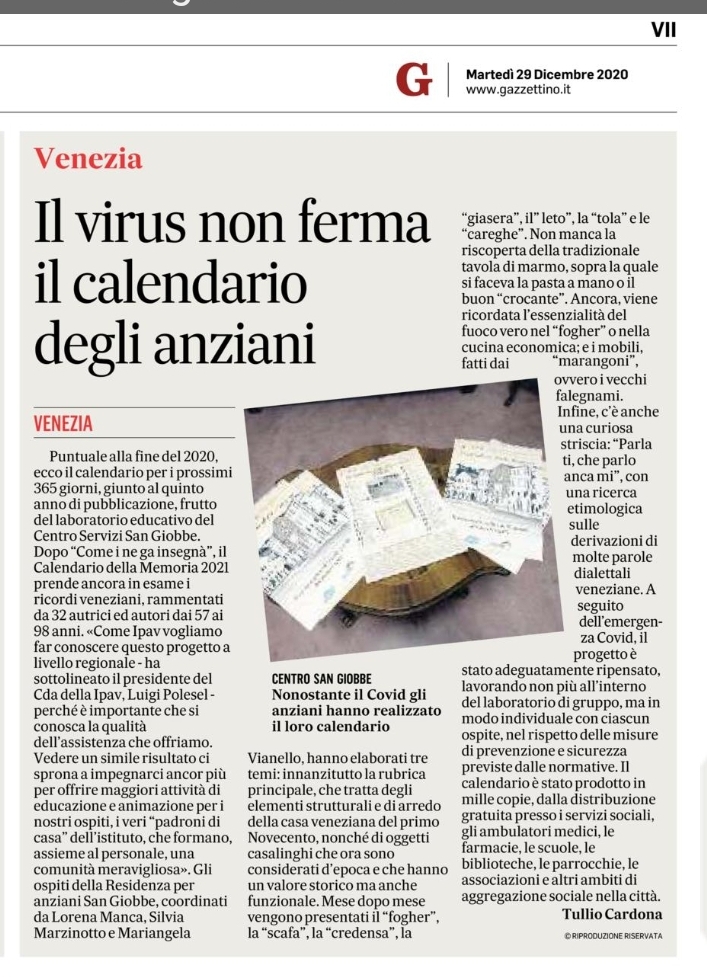 GAZZETTINO CALENDARIO SAN GIOBBE 2021