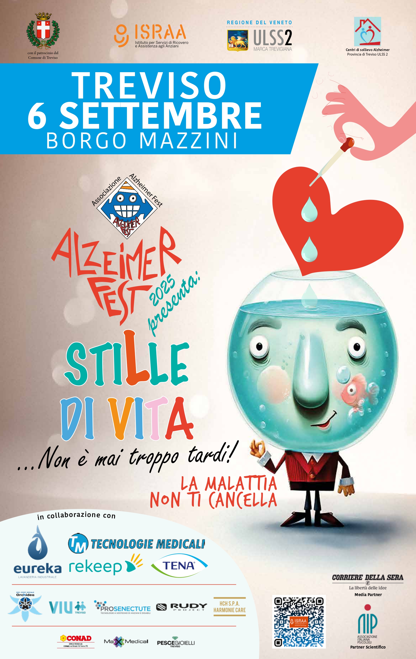 Il tour nazionale 2025 parte proprio da Treviso il 6 settembre! ISRAA organizza la prima tappa nel cuore della città: una giornata speciale, aperta a tutti, per vivere il tema della fragilità con leggerezza, creatività, bellezza e tanta umanità. Borgo Mazzini prenderà vita con un evento diffuso fatto di mostre artistiche, installazioni, musica dal vivo, incontri e conferenze dedicate alla prevenzione e ai fattori di rischio per la demenza, ma anche attività ludico- creative per anziani con i Centri Sollievo della Provincia, letture per bambini con la biblioteca BRaT, una sfilata per le strade della città al seguito dei FUNKASIN STREET BAND e molto altro.