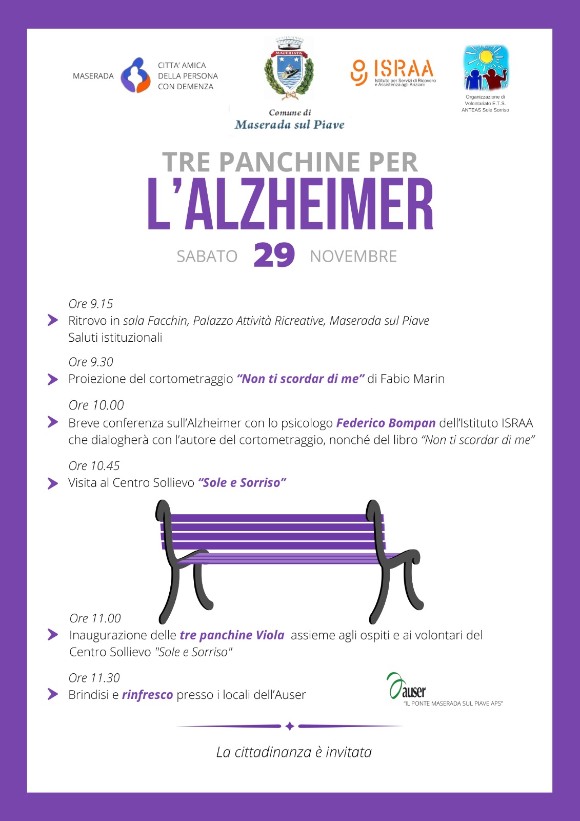 TRE PANCHINE PER L'ALZHEIMER - sabato 29 novembre - Maserada sul Piave