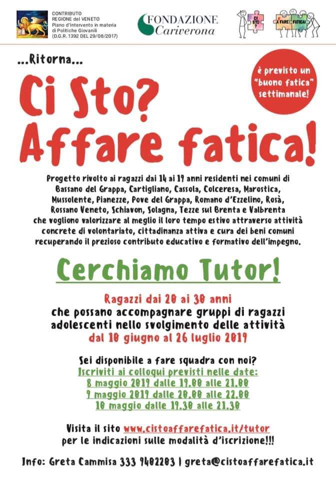 RICERCA TUTOR PER ATTIVITA' DI VOLONTARIATO -CI STO? AFFARE FATICA!