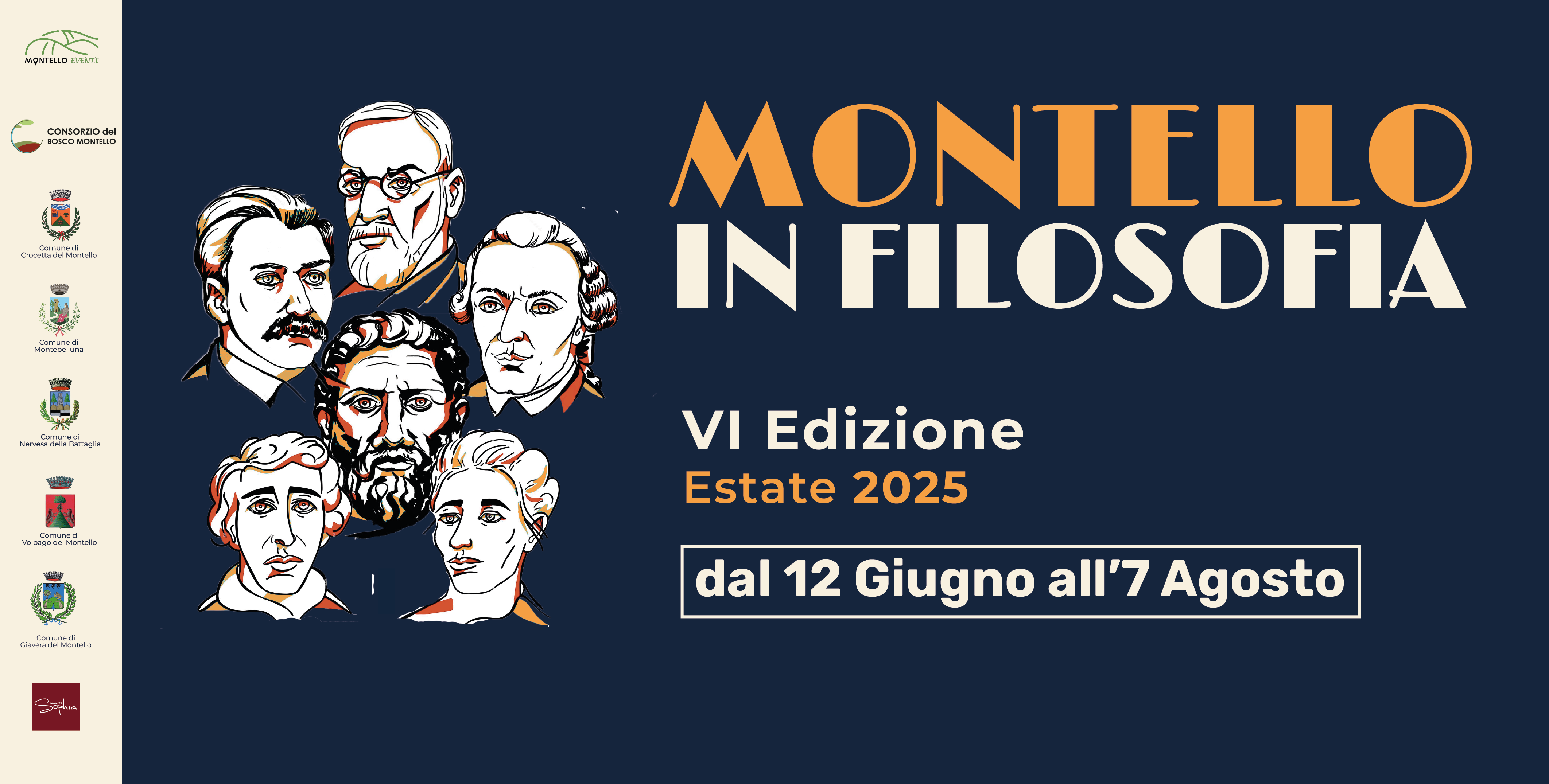 Nel cuore dell’estate, tra i boschi e le colline del Montello, torna uno degli appuntamenti culturali più attesi del territorio: Montello in Filosofia, il festival organizzato da La Chiave di Sophia che ogni anno riporta la filosofia al centro della comunità, intrecciando riflessione, spettacolo e bellezza paesaggistica.Giunto alla sesta edizione, il festival coinvolge i Comuni di Montebelluna, Crocetta del Montello, Giavera del Montello, Nervesa della Battaglia e Volpago del Montello, con un programma ricco e variegato che si snoda tra spettacoli, incontri, passeggiate filosofiche valorizzando i luoghi più suggestivi del territorio.