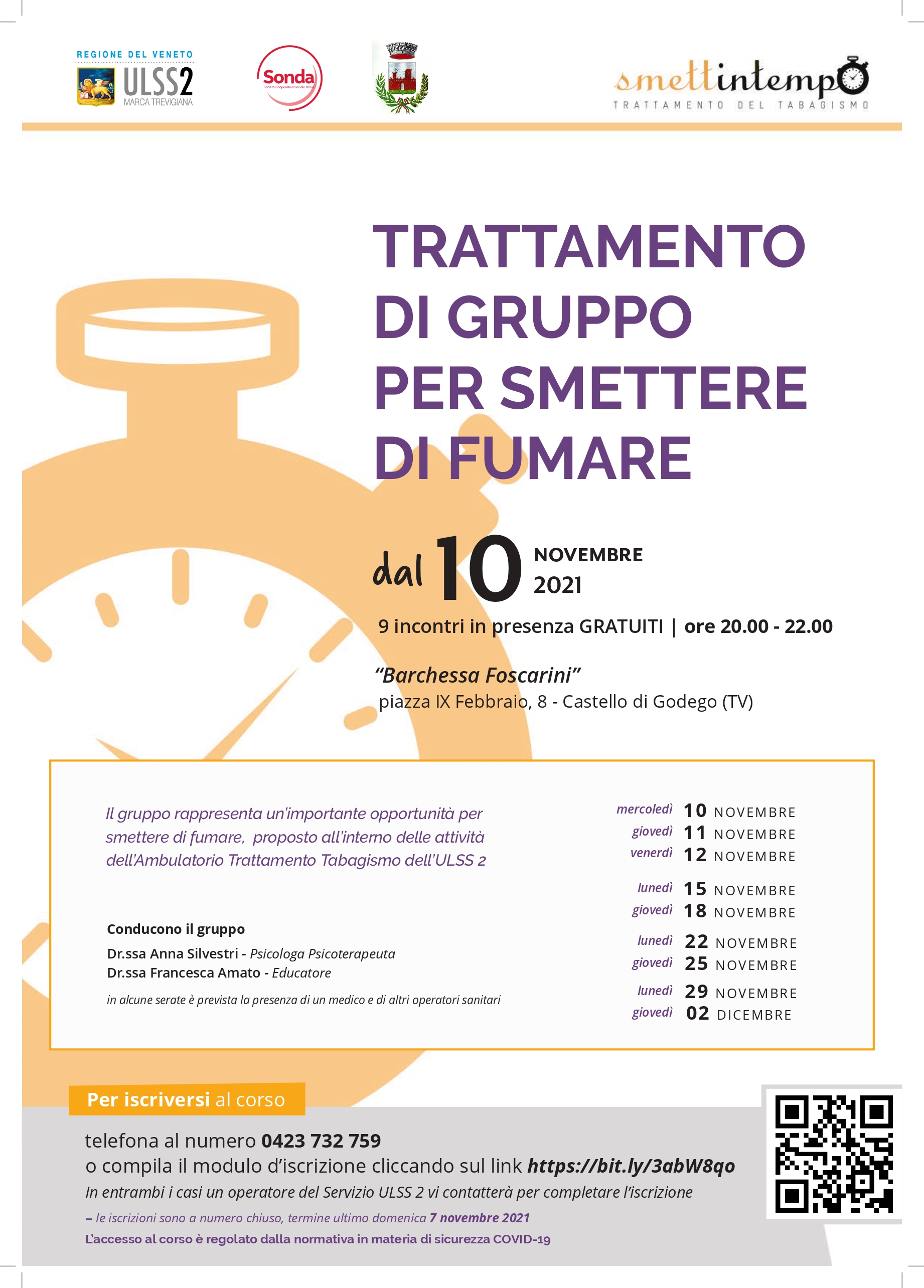 Il 10 novembre 2021 partirà a Castello di Godego un nuovo Corso per Smettere di Fumare rivolto alla popolazione.