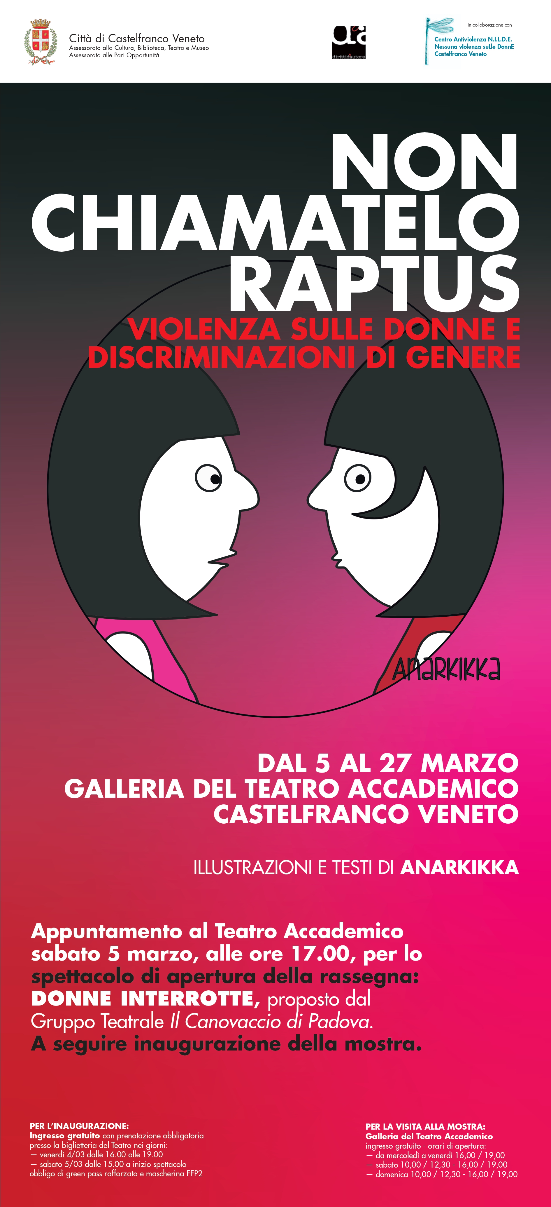 "Non chiamatelo RAPTUS": Iniziativa di sensibilizzazione aperta a tutta la cittadinzanza contro la violenza sulle donne e discriminazione di genere presso il Teatro Accademmico di Castelfranco Veneto a partire dal 5 marzo; tutti i dettagli nella locandina allegata.