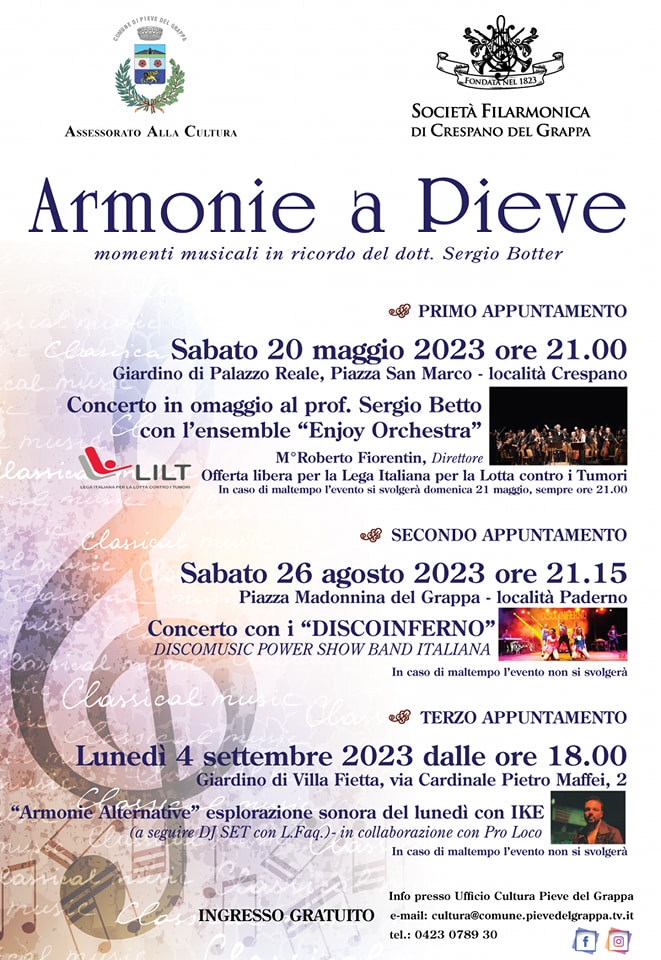 Ritorna la rassegna musicale "ARMONIE A PIEVE" in collaborazione con la Società Filarmonica di Crespano!