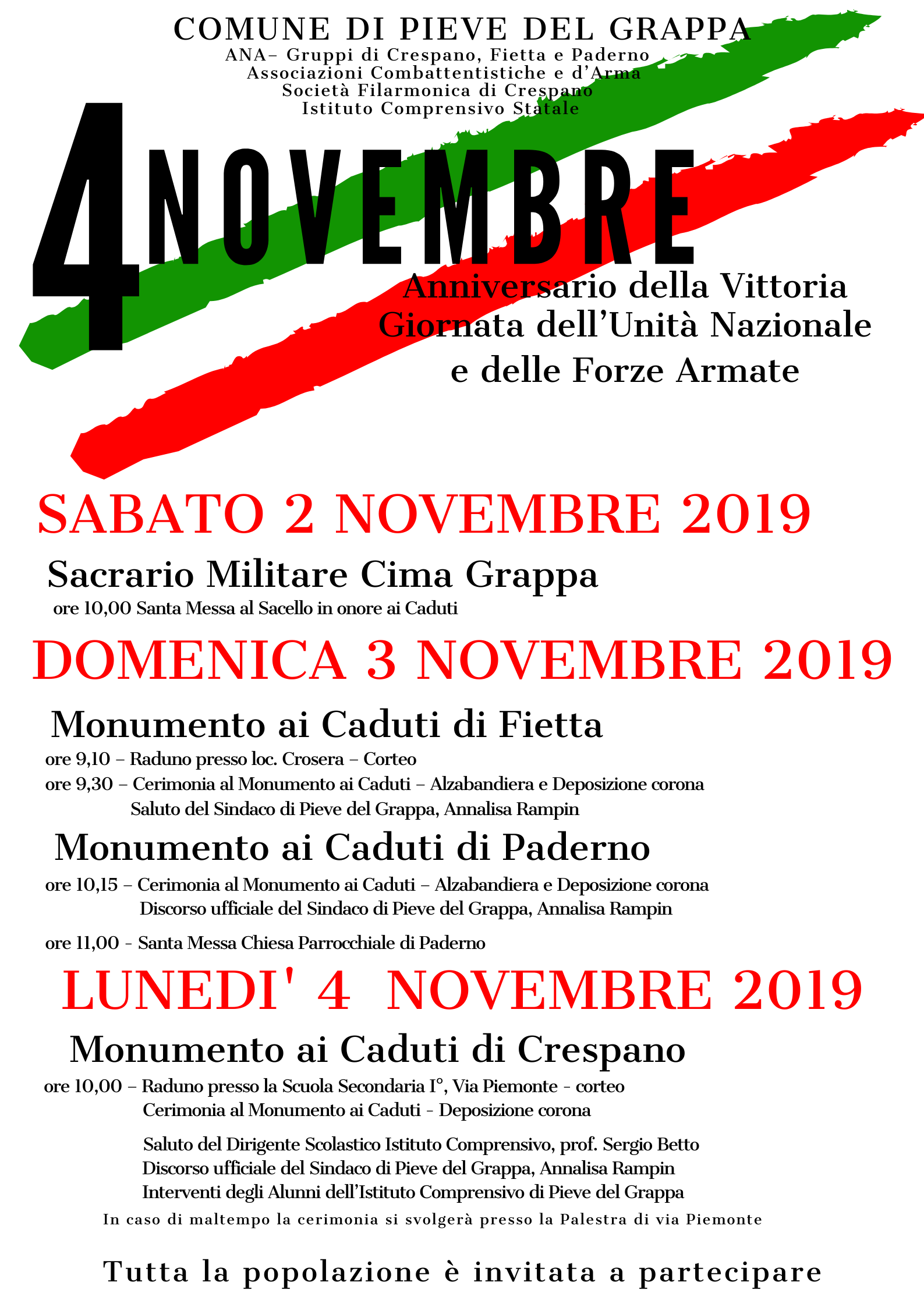 Cerimonie a Cima Grappa, Fietta, Paderno e Crespano dal 2 al 4 novembre