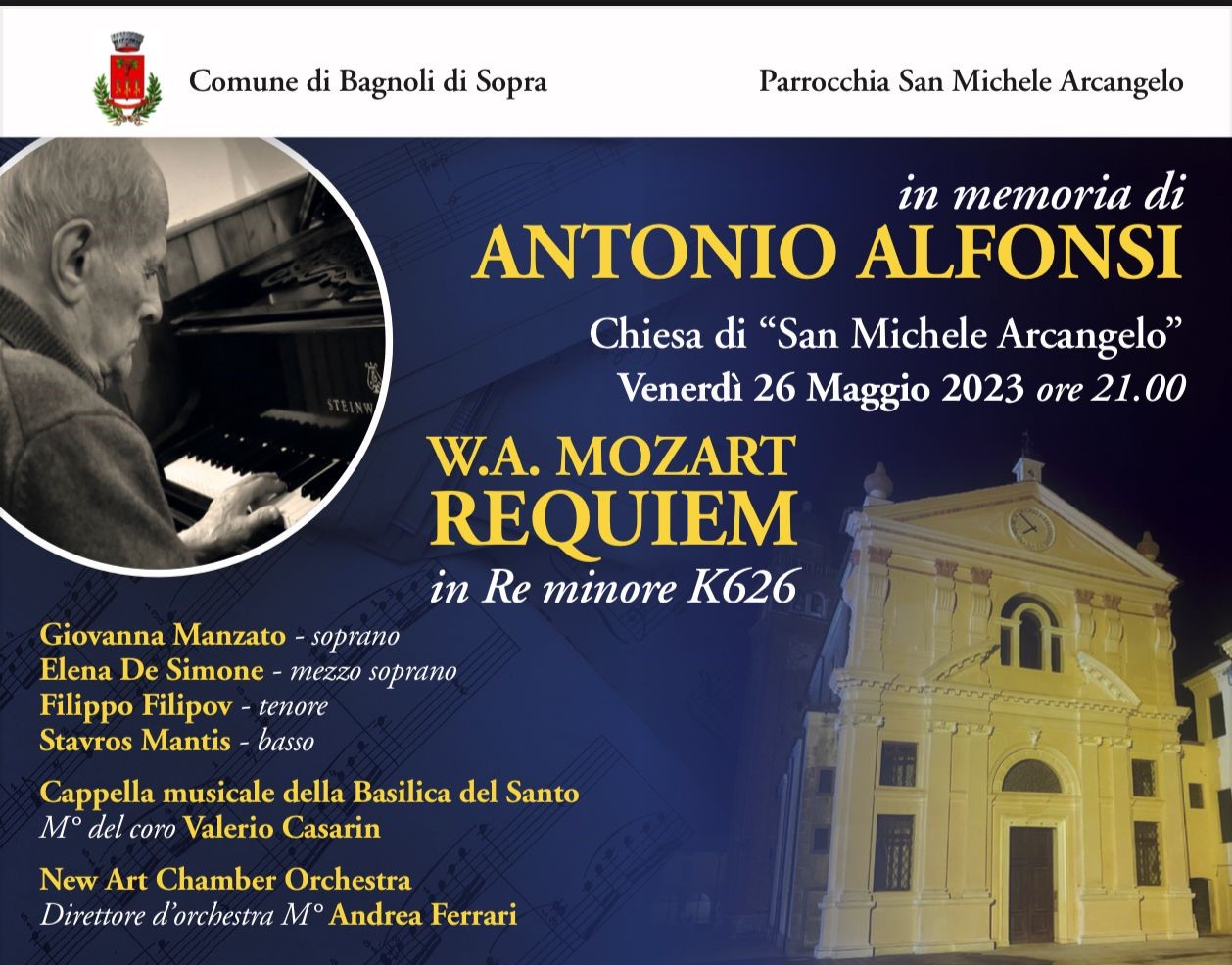 CONCERTO IN MEMORIA DEL SIG. ALFONSI ANTONIO VENERD' 26 MAGGIO 2023 ALLE ORE 21,00 PRESSO CHIESA PARROCCHIALE SAN MICHELE ARCANGELO