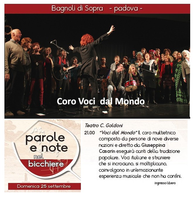 DAL 23 AL 25 SETTEMBRE ARRIVA A BAGNOLI DI SOPRA LA MANIFESTAZIONE "PAROLE E NOTE NEL BICCHIERE" CON RECITAL, TEATRO, INCONTRI CON GLI AUTORI, MUSICA TUTTI DEDICATI AL TEMA DEL VINO E NATURALMENTE UN BRINDISI ALL'ARTE CON CALICE DI VIN FRIULARO DI BAGNOLI DOCG.