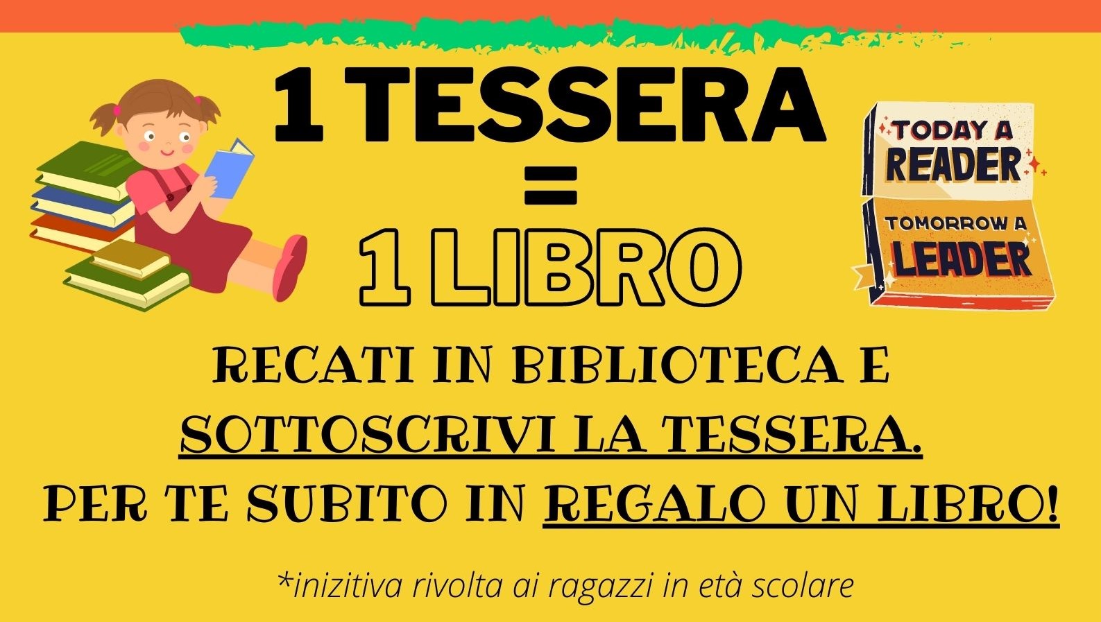 L'iniziativa ha dato il via anche al progetto "1 tessera = 1 libro", valido per tutto il mese di ottobre: ad ogni bambino che sottoscriverà la tessera bibliotecaria, verrà donato un libro.