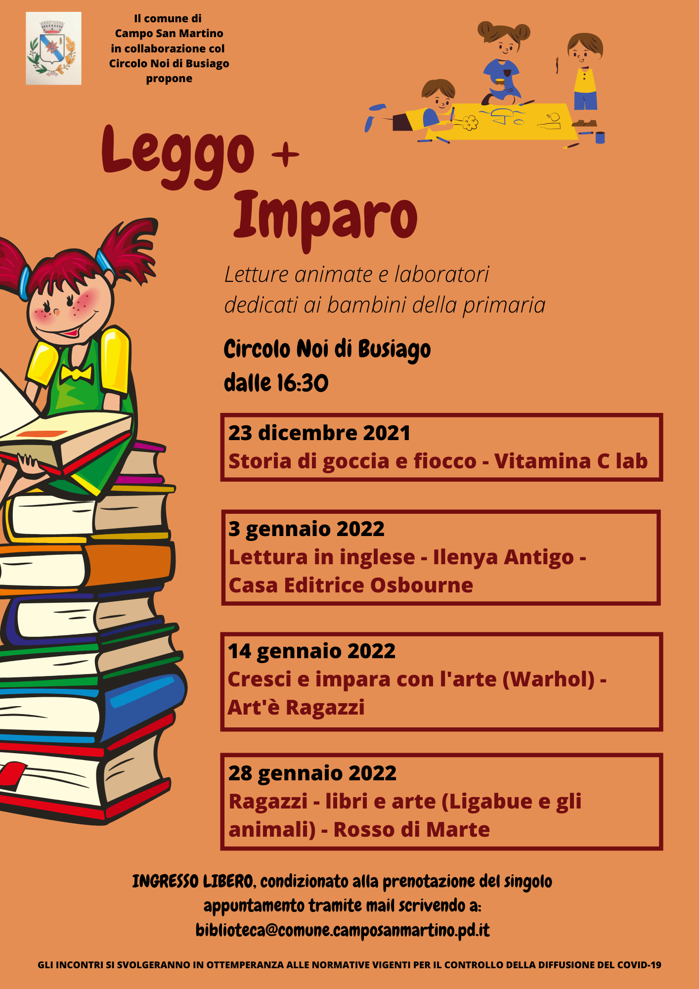 Il Comune di Campo San Martino, in collaborazione col Circolo Noi di Busiago, organizza un ciclo di letture animate seguite da laboratori.