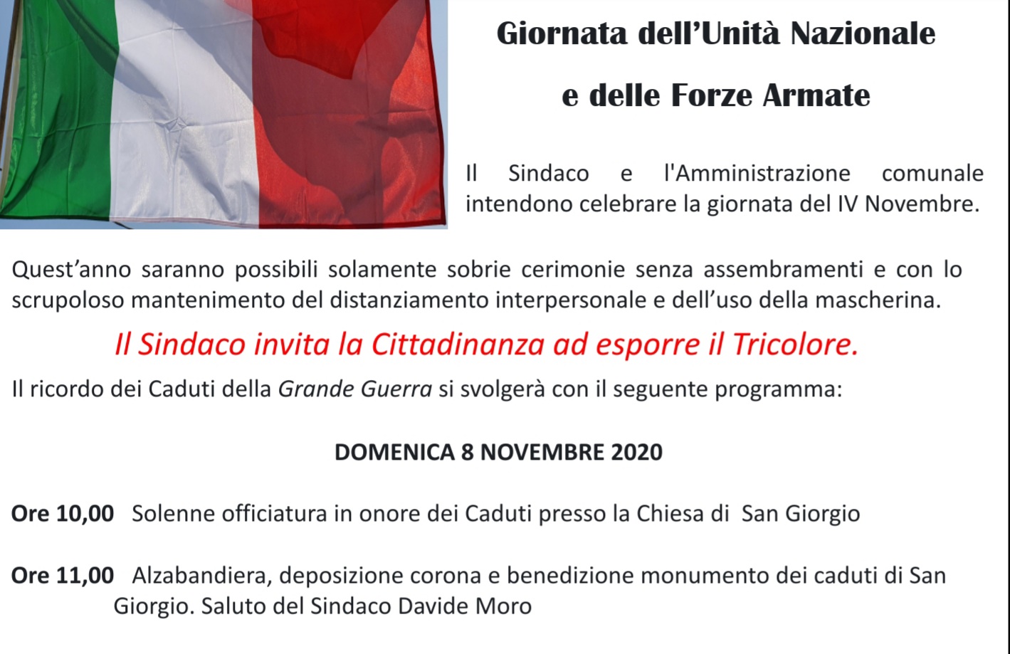 Il Sindaco e l'Amministrazione comunale intendono celebrare la giornata del IV Novembre.