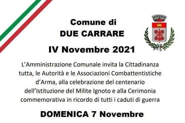 Quest'anno, in occasione del centenario del Milite Ignoto, l'amministrazione ha deciso di celebrare tale ricorrenza incidendo su una targa 10 nomi di caduti a causa della Prima Guerra Mondiale a cui non era ancora stato dato un riconoscimento.Inoltre, nella loggia del comune, verrà presentato il libro "Per non dimenticare. I caduti dei comuni delle Carrare nella Prima Guerra Mondiale" di Gabriella Calderini, Marco Salvo e Paolo Valandro. La Festa dell'Unità Nazionale e delle Forze Armate del 4 novembre sarà celebrata, quindi, domenica prossima 7 di novembre.