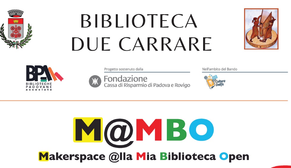 Iniziativa organizzata dal Consorzio Biblioteche Padovane Associate nell'ambito del Progetto M@mbo - Makerspace @lla mia Biblioteca Open, finanzianto con il contributo della Fondazione Cariparo nell'ambito del Bando Cultura Onlife.