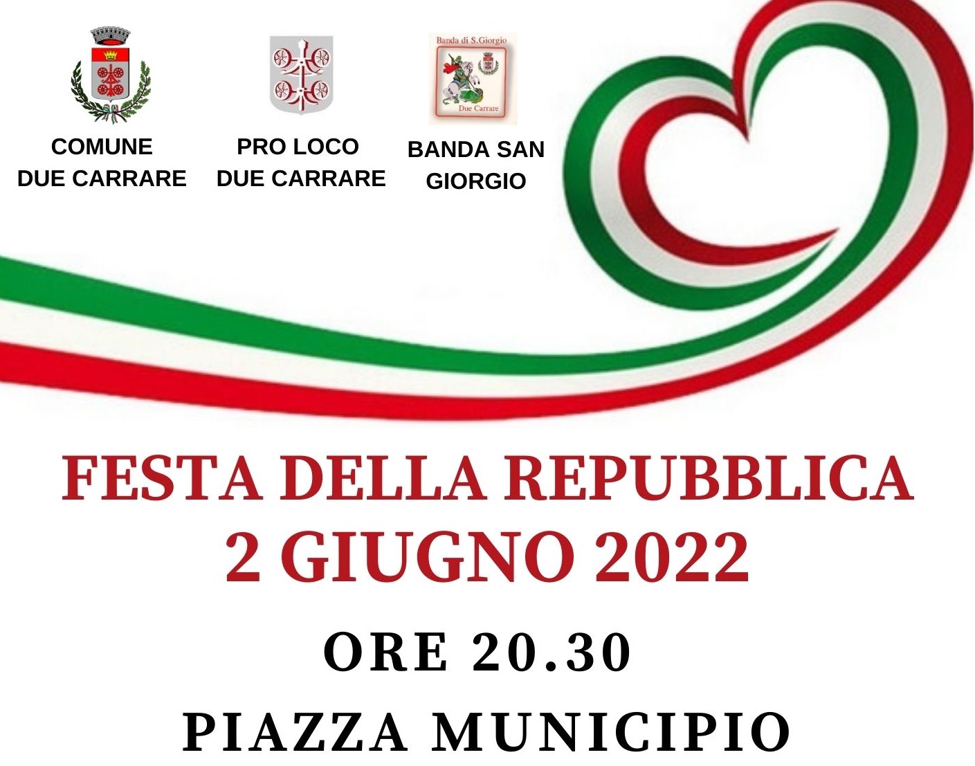 Giovedì 2 Giugno alle ore 20:30 in Piazza del Municipio si terrà la tradizionale celebrazione della FESTA della REPUBBLICA.