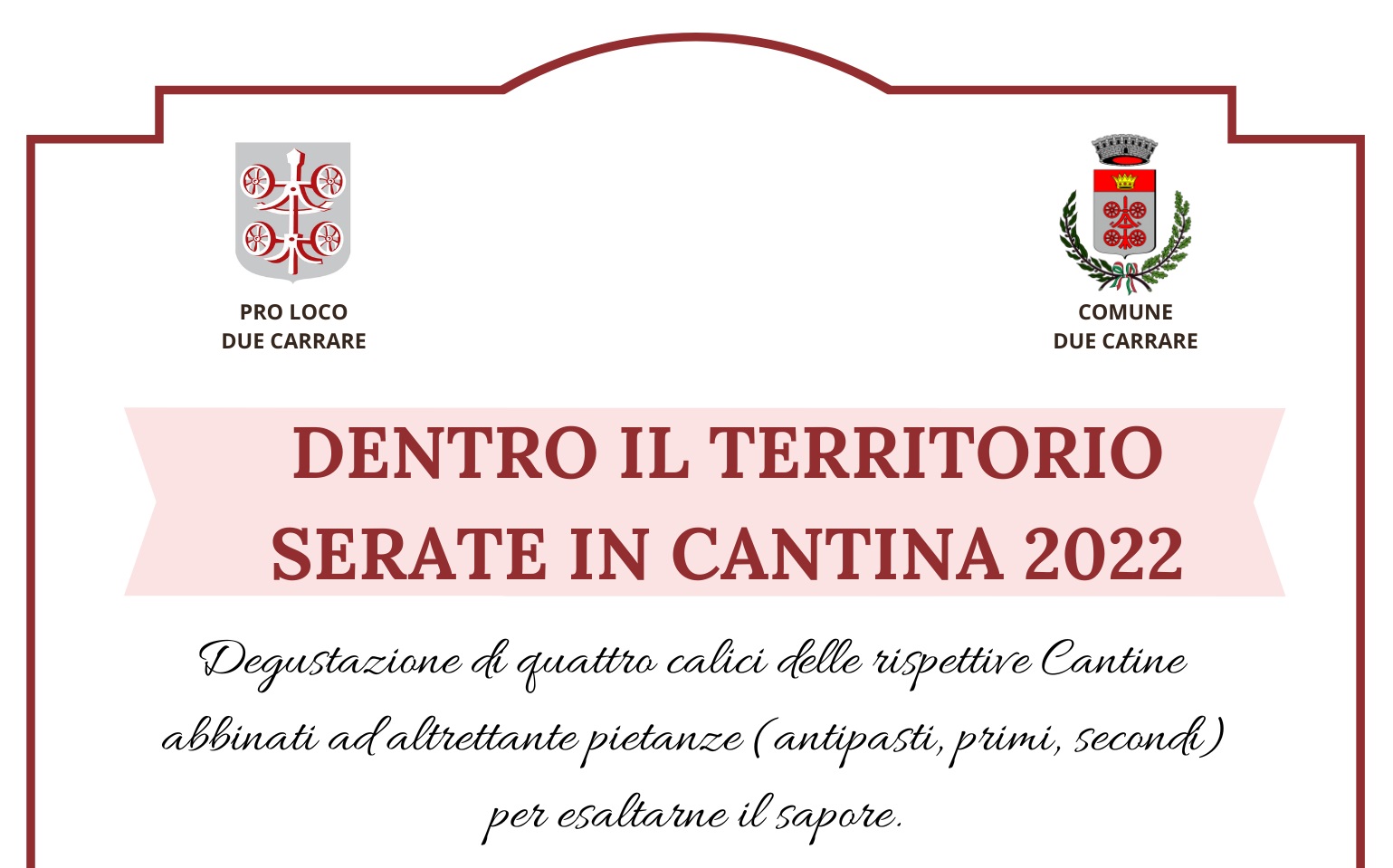 La Pro Loco di Due Carrare con il Patrocinio del Comune di Due Carrare vi invita a "Dentro il territorio" tre serate in Cantina con degustazione.