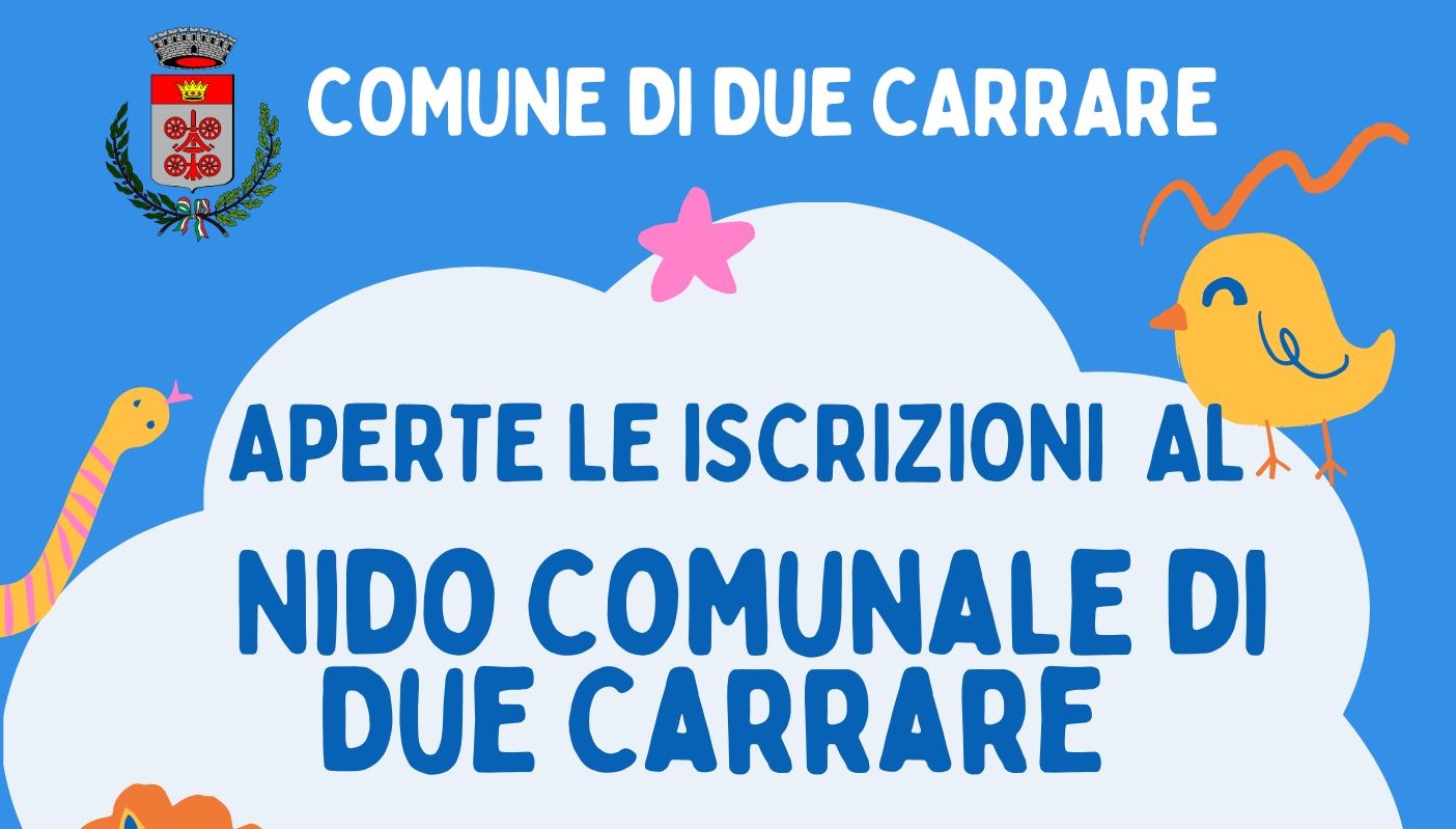 Sono aperte le ISCRIZIONI per l’accesso al Servizio del Nido Comunale di Due Carrare per l’Anno Educativo 2023/2024 (inserimenti da Settembre 2023) fino al 31 Maggio 2023.