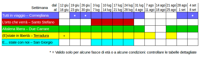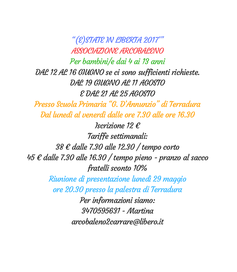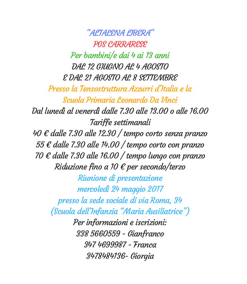 Ancora una volta si avvicina un'estate ricca di opportunità per i giovani carraresi, che, finita la scuola, potranno trovare occasioni di svago, divertimento, gioco e sport scegliendo tra le tante attività offerte dalle associazioni e dalle parrocchie.