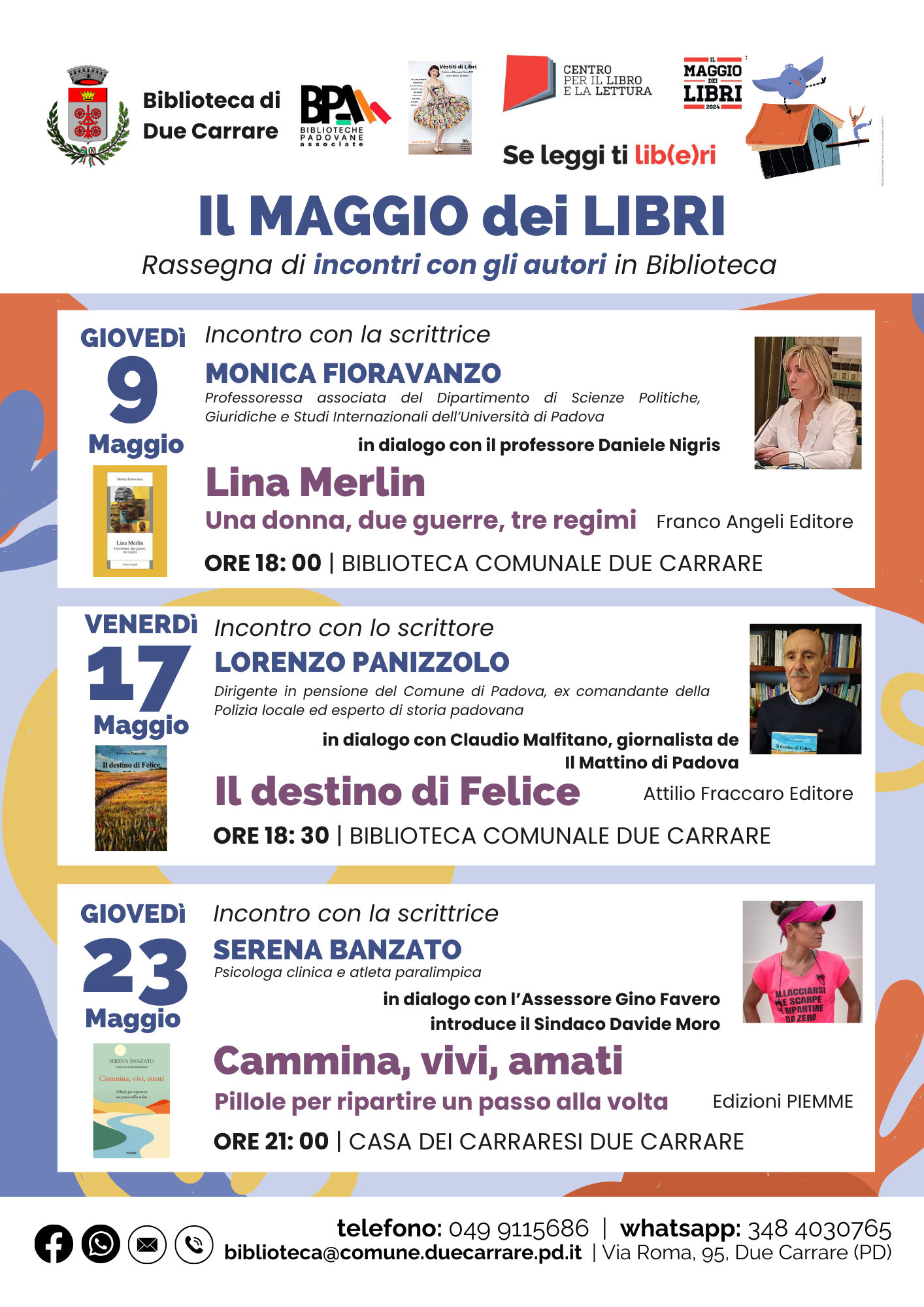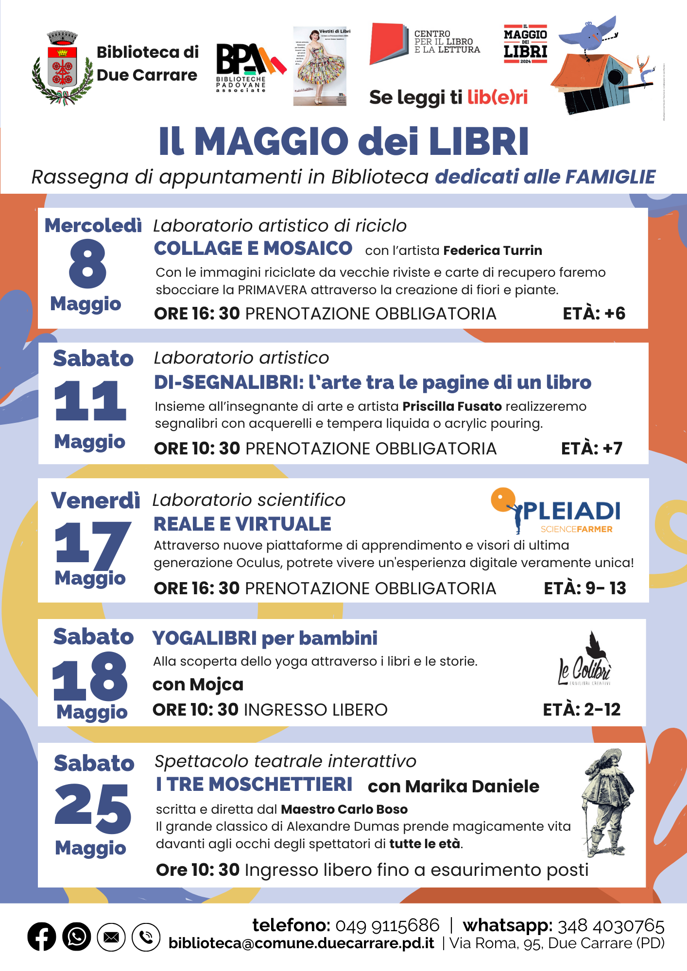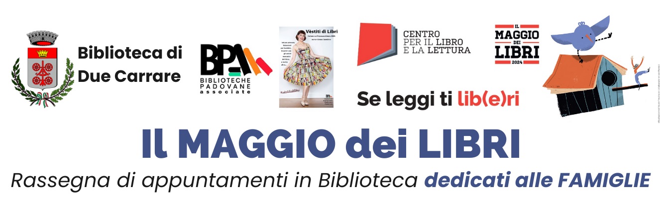 Info e prenotazioni: Biblioteca di Due Carrare tel. 049 9115686, email: biblioteca@comune.duecarrare.pd.it, Whatsapp: 348 4030765