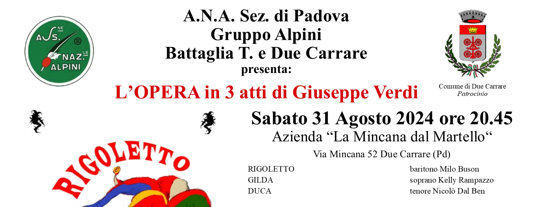 Il Gruppo Alpini di Battaglia Treme e Due Carrare con il Patrocinio del Comune di Due Carrare sono lieti di invitarvi alla serata di lirica