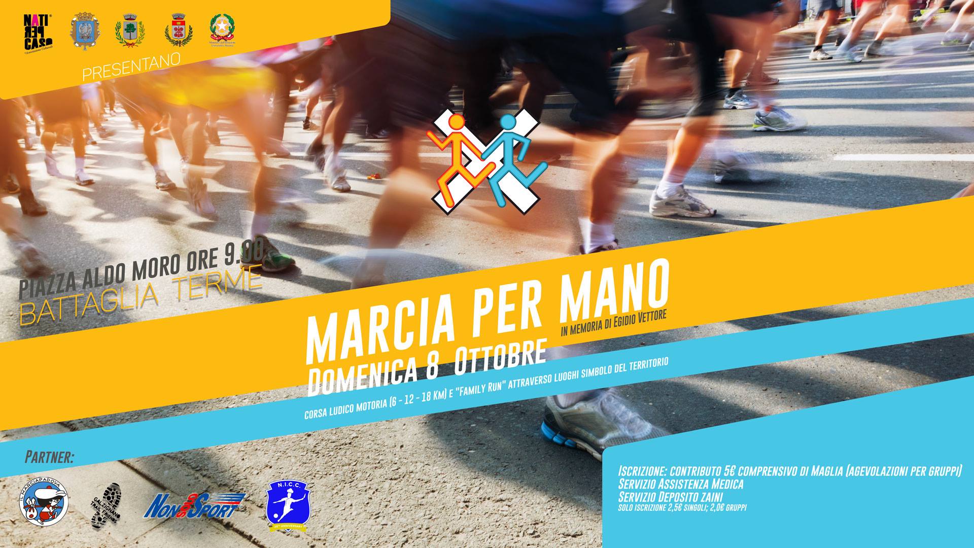L'associazione culturale "Nati Per Caso", con la collaborazione dell'Istituto comprensivo di Due Carrare e Battaglia Terme e del suo Comitato dei Genitori, e con il patrocinio dei comuni di Battaglia Terme, Due Carrare e Galzignano Terme, organizza la "Marcia per mano" il giorno 8 ottobre 2017.