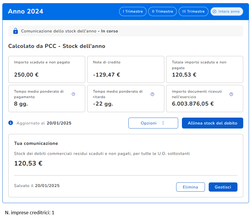 Stock del debito e numero imprese creditrici - 4° Trimestre 2024 (Annuale) (73.36 KB)
